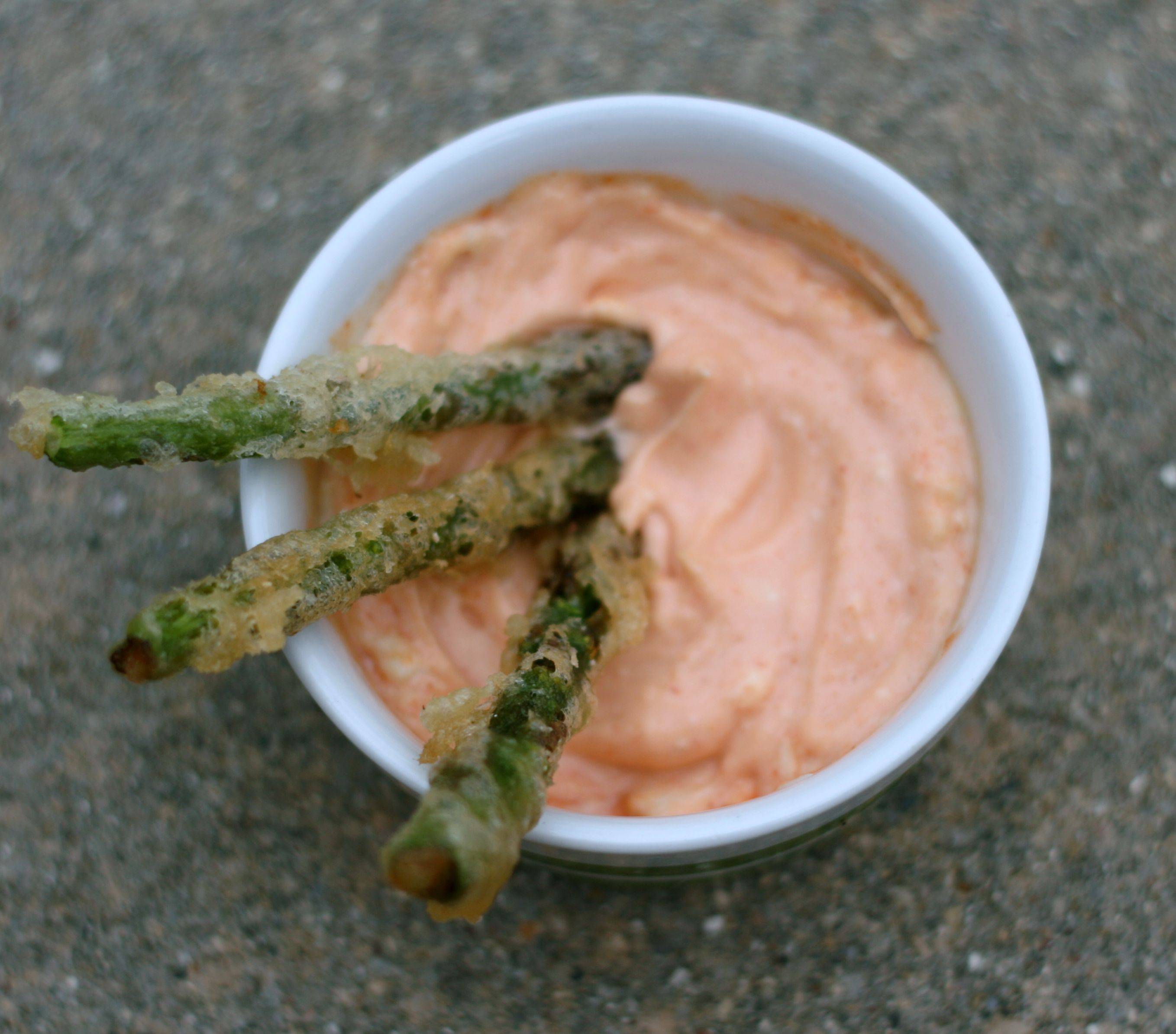 Last weekend, inspired by Bon Appetite’s June 2013 recipe for Green Bean Tempura, I decided to fry up some asparagus. Everyone ate it–2 lbs of tender green spears disappeared in 45 minutes.