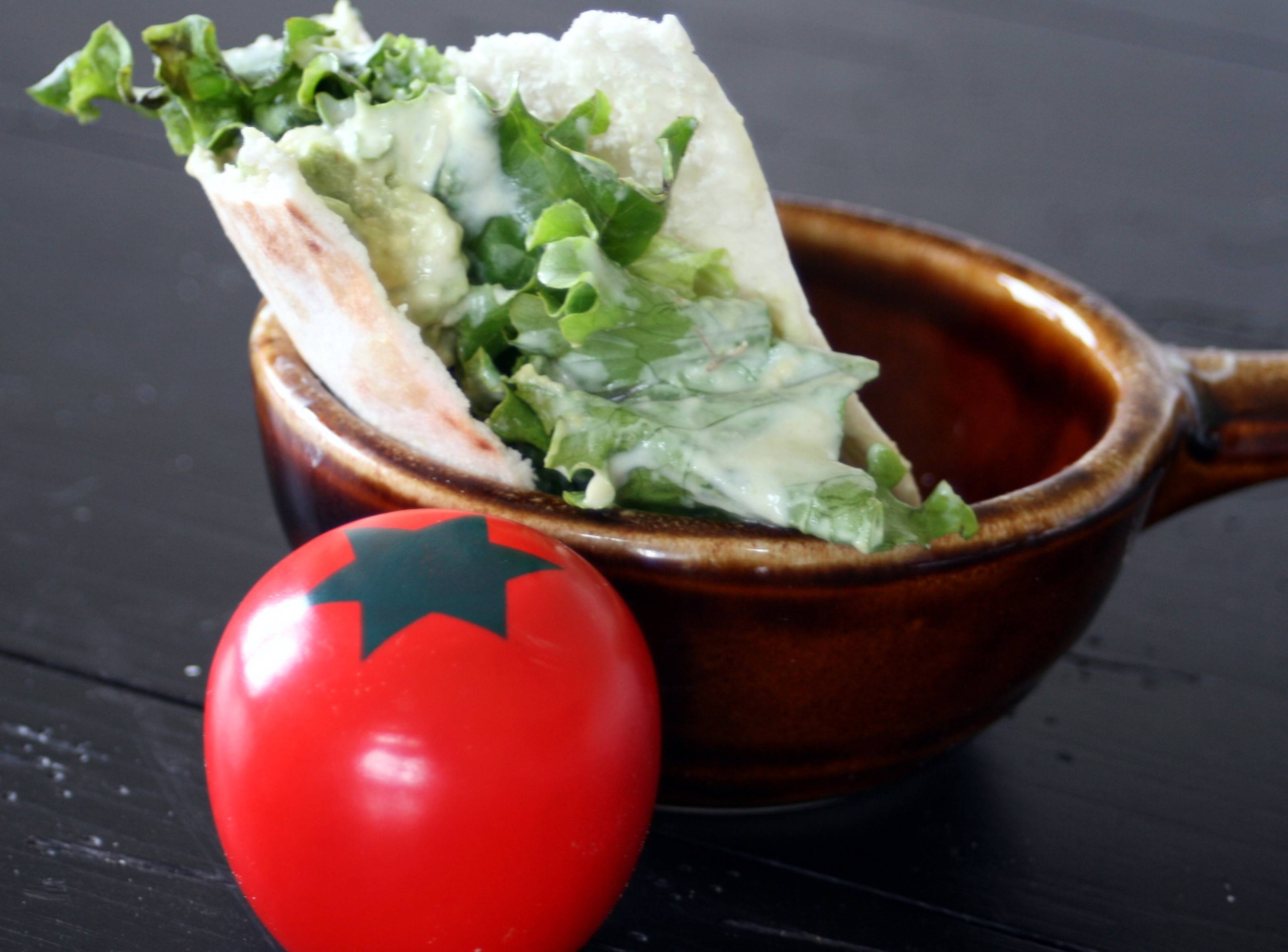 This creamy, pale green dressing is spiked with garlic and lemon juice, with a whole avocado mixed in for extra flavor and nutrition. It is great on salads, but also makes an excellent veggie dip. I used it to top what may be my go-to lunch this summer: greens tucked in a pita, along with black beans and carrots, drizzled with this green goddess goodness.