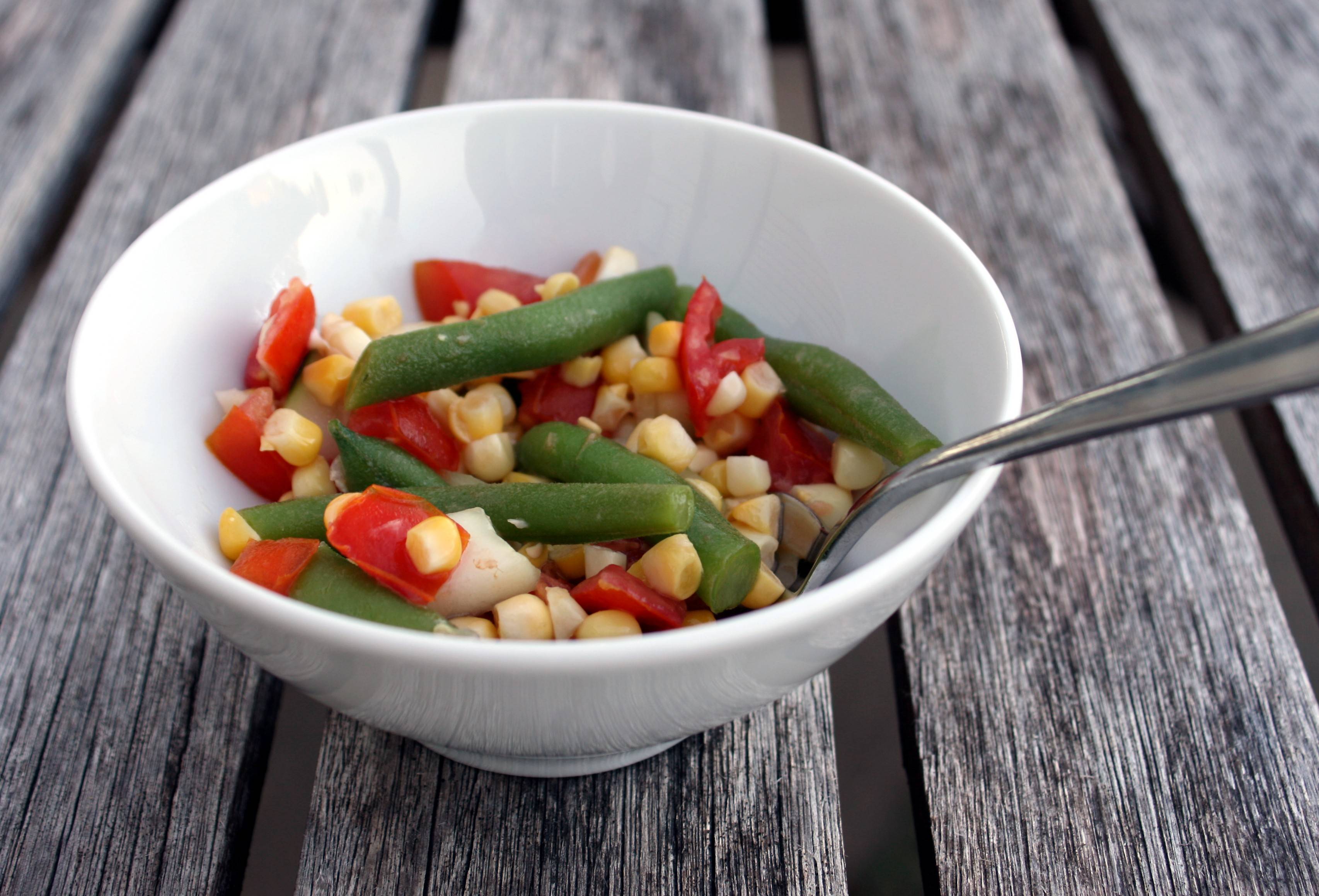 This is a perfect summer salad: not too much effort, and it takes advantage of late summer’s bounty. Because it is so simple, it truly relies on the best tasting produce to elevate it. Most importantly is the corn – find the sweetest, freshest corn you can. Ripe, local tomatoes are a must too.