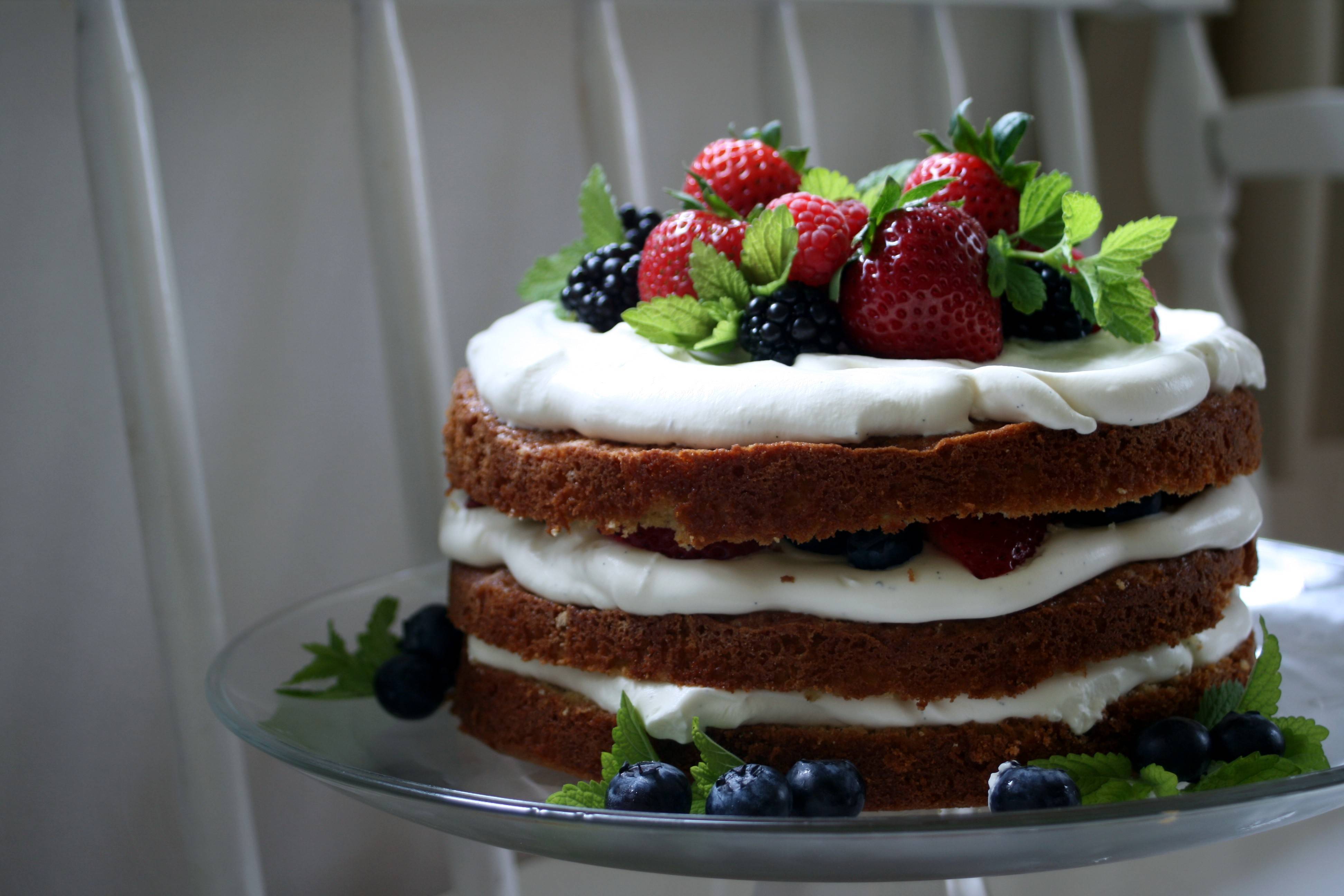 I’m working on creating some memorable traditions for my boys. A simple one we’ve practiced for my son’s past two birthdays is the Picking of the Birthday Treat. My son pulls out a selection of cookbooks, and flips the pages, studying each treat until he finds one that tickles his fancy. I have to say, he’s got a good eye. Last year, whoopie pies, this year, a layered berry cake. Slices of delicious vanilla cake, slathered with freshly whipped cream and the ripest, prettiest berries you can imagine.